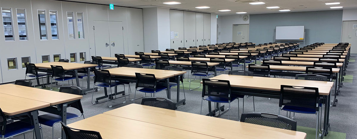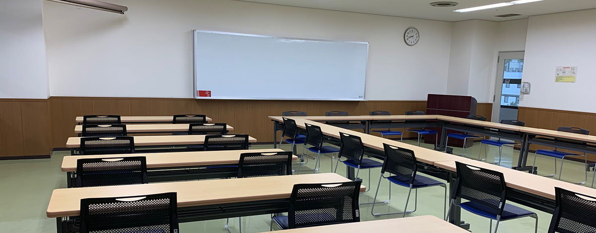 机:長机13椅子:40 (常設26)講演台ホワイトボード:固定式スクリーン:固定式案内板 駐車場認証機 -