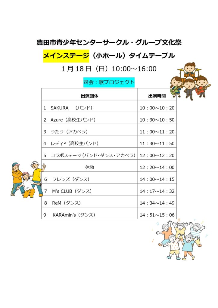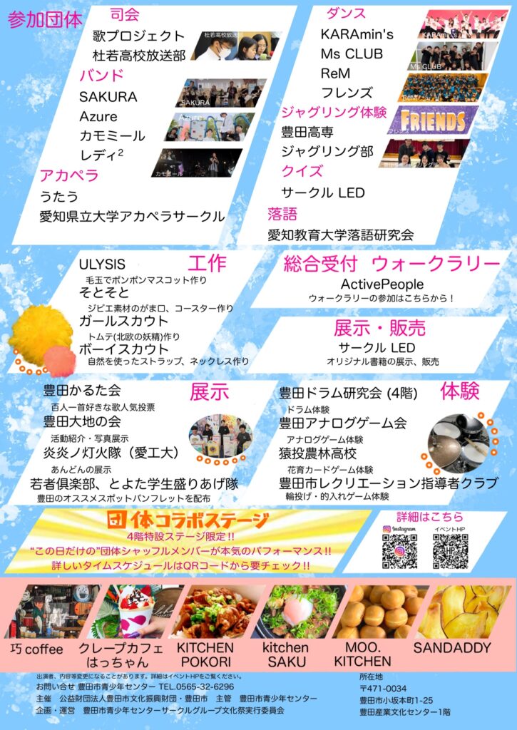 青少年センターに登録しているサークル・グループがコラボして小ホールでパフォーマンスをしてくれます!