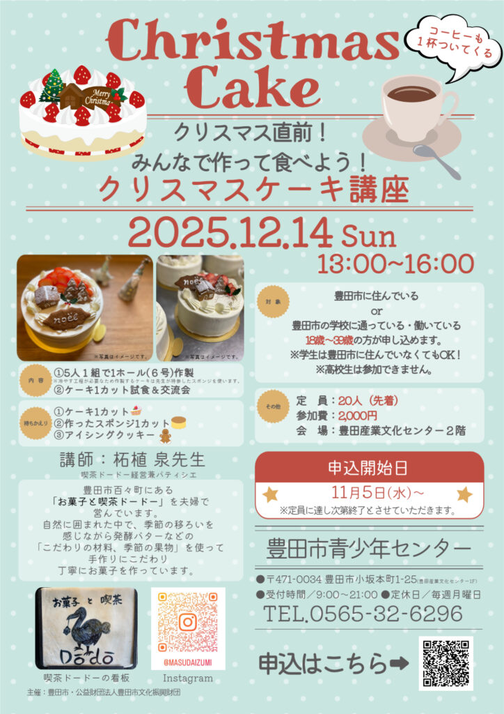 【若者限定】クリスマスケーキ講座!~クリスマス直前!みんなで作って食べよう!~