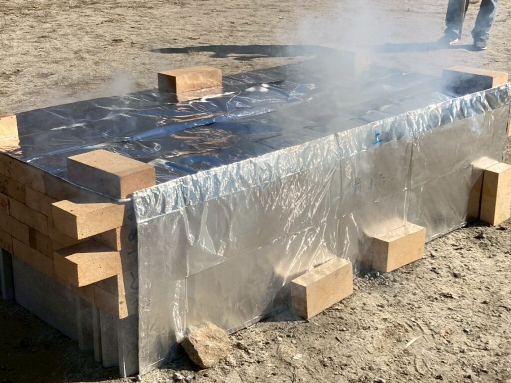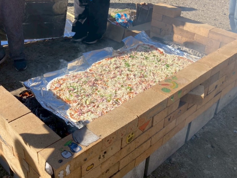 レンガを組み合わせてピザ窯から自分たちでつくり😲、無事にピザを焼くことができました!
