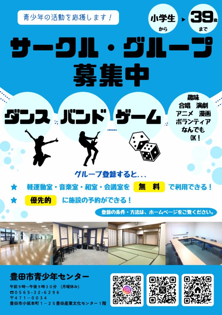 青少年センターにはバンドやダンス、アカペラ、ボードゲーム、折り紙など様々なサークル・グループが登録して活動しています。